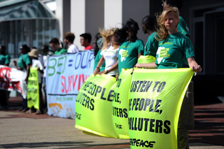 These emerging movements have connected and learnt from each other without the need to be formalised in a single mega-event. Manifestos and declarations (a central part of the Cochabamba process) have been sidelined, although common actions have emerged in other ways. The 15 October call to protest was the most widespread international mobilisation since the anti-war protests, while several ‘memes’ (copycat slogans and symbols circulated online) have helped to forge a common movement identity. This was also present in Durban, where Occupy protesters mic-checked as they sought to adapt the language of the ‘99 per cent’ to the climate debate.