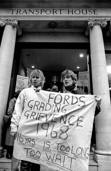 The 1968 strike of sewing machinists at Ford factories in both Dagenham, east London, and Halewood, Liverpool, began as a grading grievance. In 1967 a new grading system for all Ford hourly-paid workers was created. This placed the women on the least skilled production grade, receiving 15 per cent less than male workers on the same grade, simply because they were women.