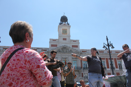 The following day hundreds more gathered in Puerta del Sol, and by the day after that they had become thousands. In imitation of Tahrir Square in Cairo, activists set up a haphazard cluster of blue tents to protect participants from the scorching sun, and to house the different committees managing the camp.