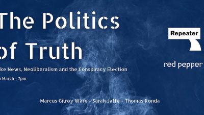 Join Marcus Gilroy-Ware, Sarah Jaffe, Thomas Konda and Hilary Wainwright to tackle conspiracy theories, fake news, and the increasing precarity of 'truth'